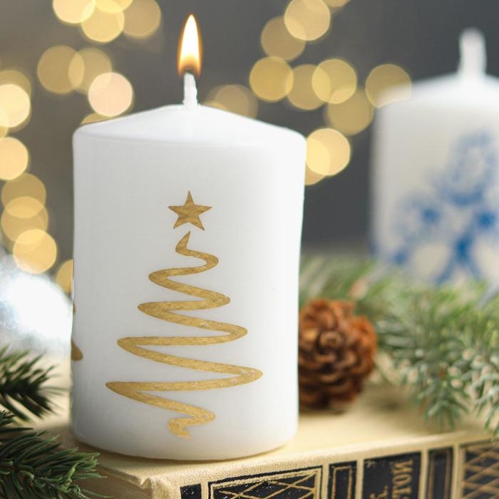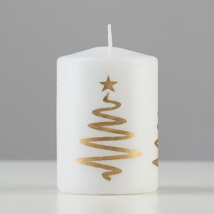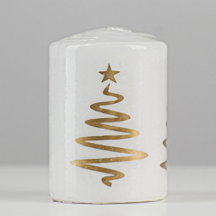 Свеча - цилиндр "Ёлочка", 5,6х8 см, белая с золотом