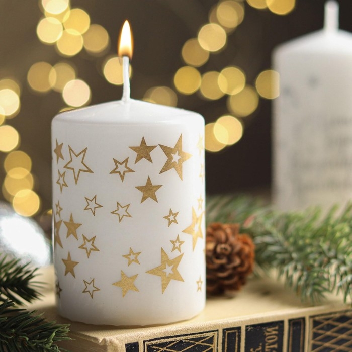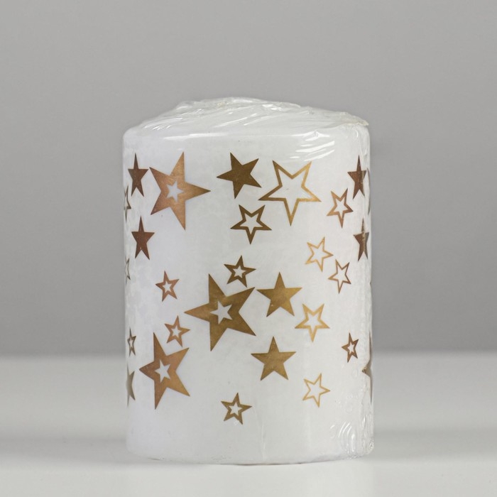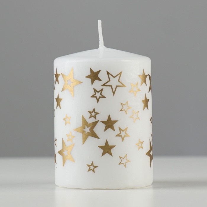 Свеча - цилиндр с узорами "Звезды", 5,6х8 см, белая с золотым