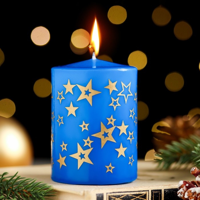Свеча - цилиндр с узорами "Звезды", 5,6х8 см, синяя с золотым