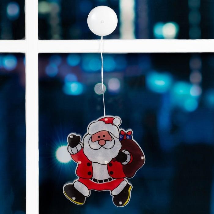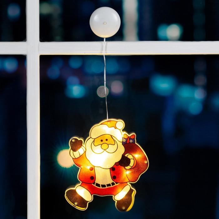 Светодиодная фигура на присоске «Дед Мороз» 19 × 22 см, пластик, батарейки АААх3 (не в комплекте), свечение тёплое белое