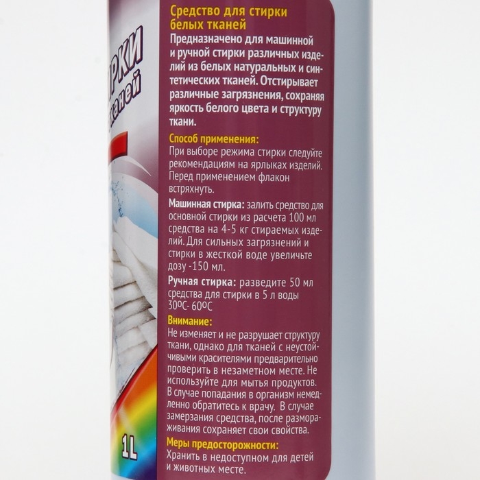 Специализированный современный гель для стирки с пониженным пенообразованием для автоматической и ручной стирки белых и светлых тканей.
