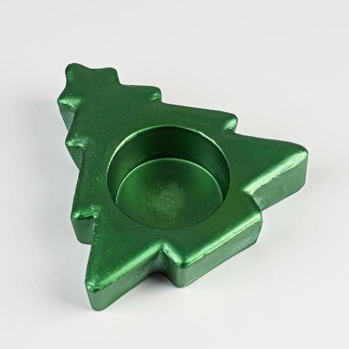 Подсвечник новогодний "Ёлочка", 2,5х9 см, зеленый металлик