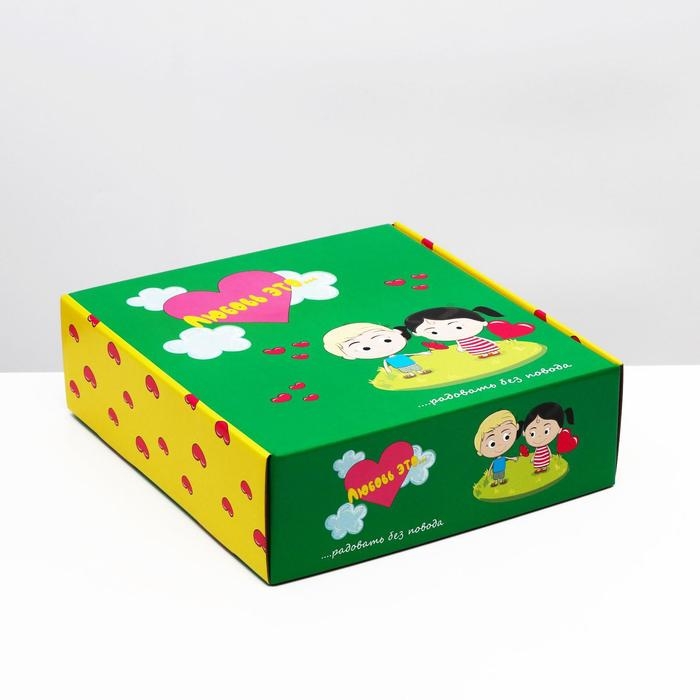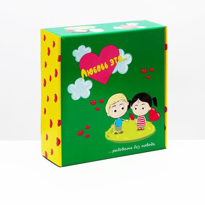 Подарочная коробка "Любовь это...", зелёная, 28,5 х 9,5 х 29,5 см