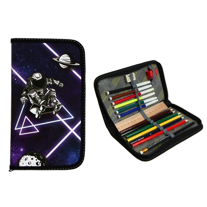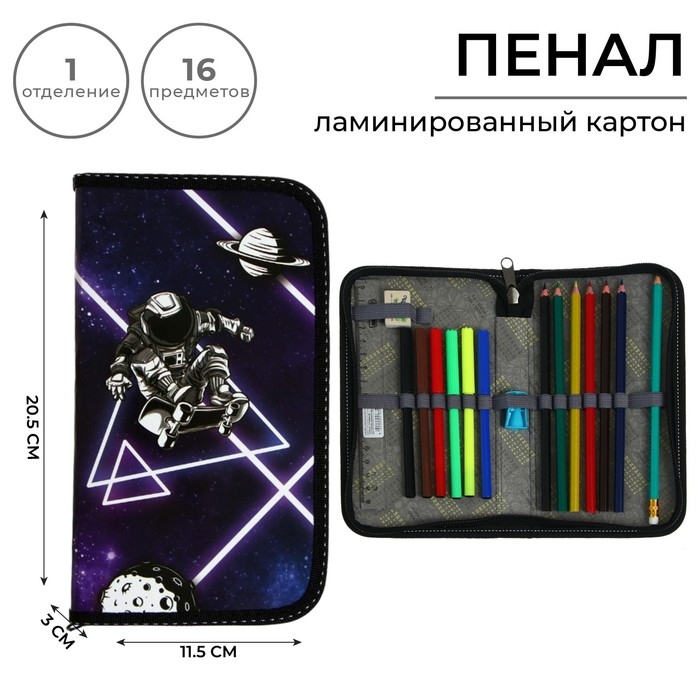 Пенал 1 секция, 115 х 205 мм, с наполнением 16 предметов, Calligrata "Космос" ламинированный картон, 30П26/set
