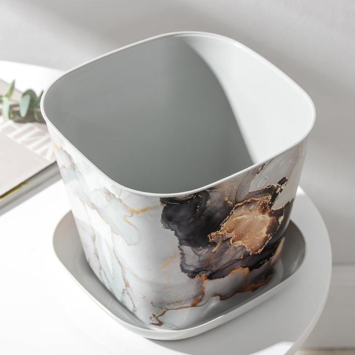 Горшок с поддоном «Мрамор», 3,7 л, цвет светло-серый