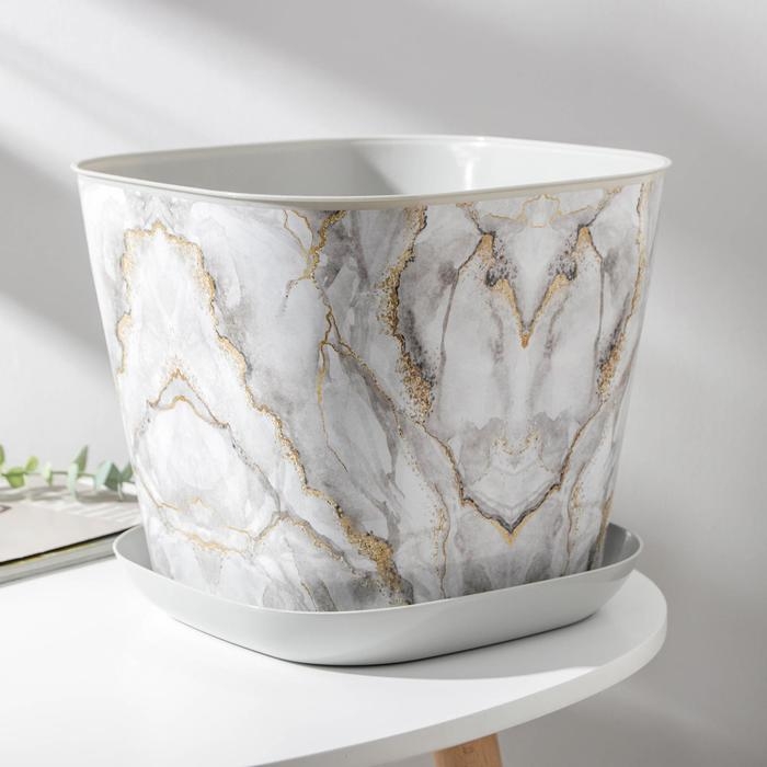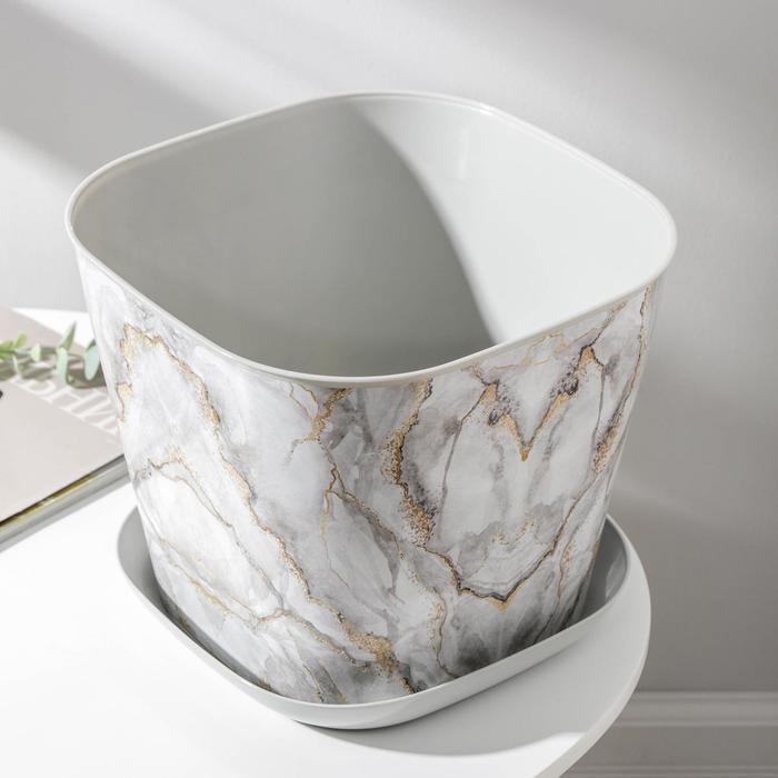 Горшок с поддоном «Мрамор», 9,8 л, цвет светло-серый