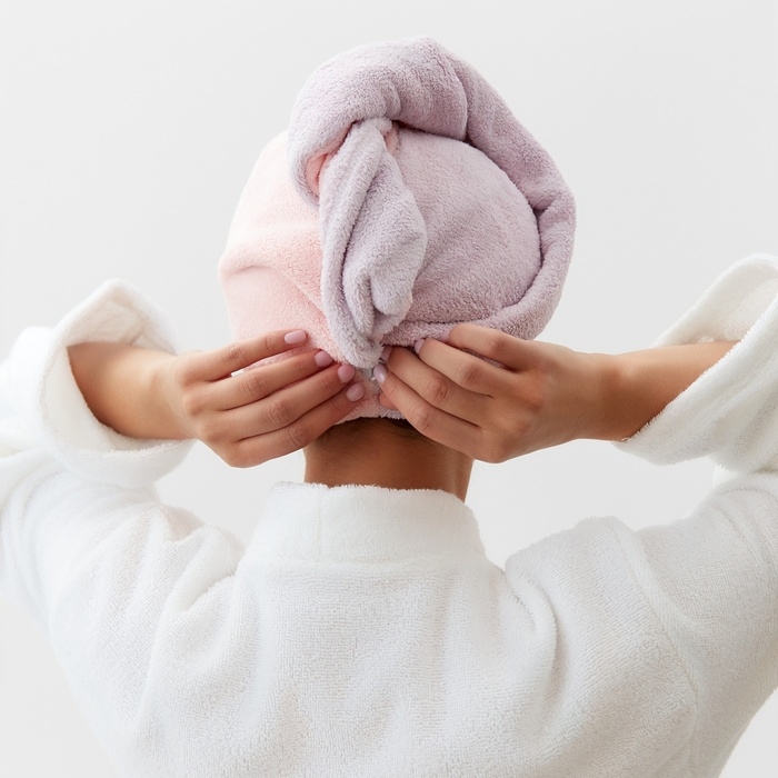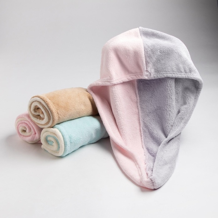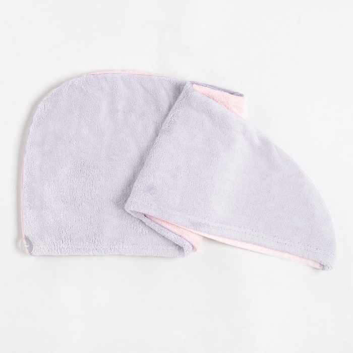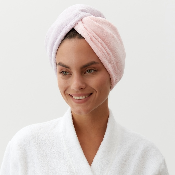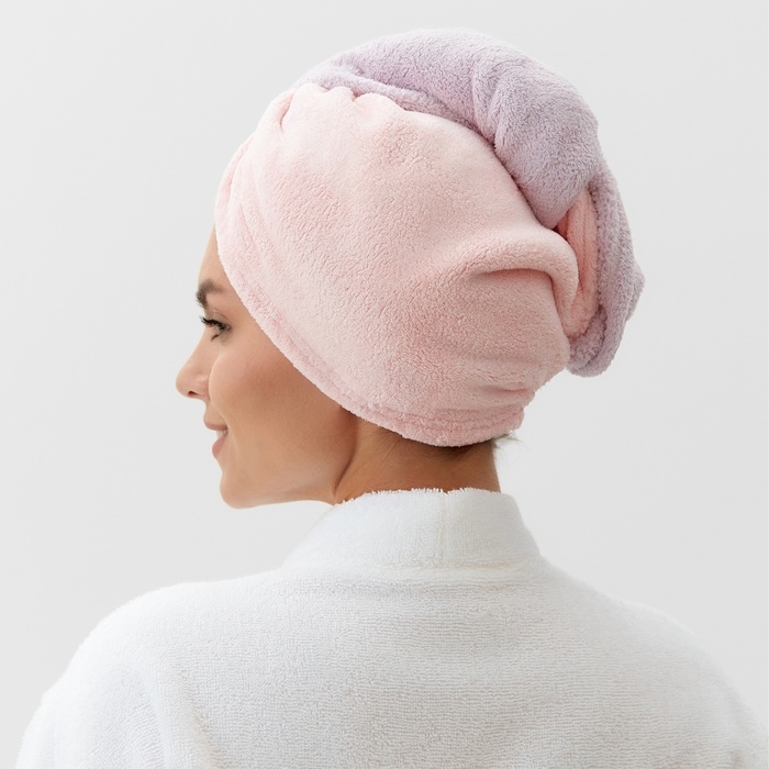 Чалма для сушки волос Этель «Двухцветная», цв.розовый/фиолетовый, 65*25 см, 100% п/э