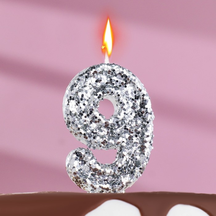 Свеча в торт «Блестки», цифра "9", серебро, 6.5х4
