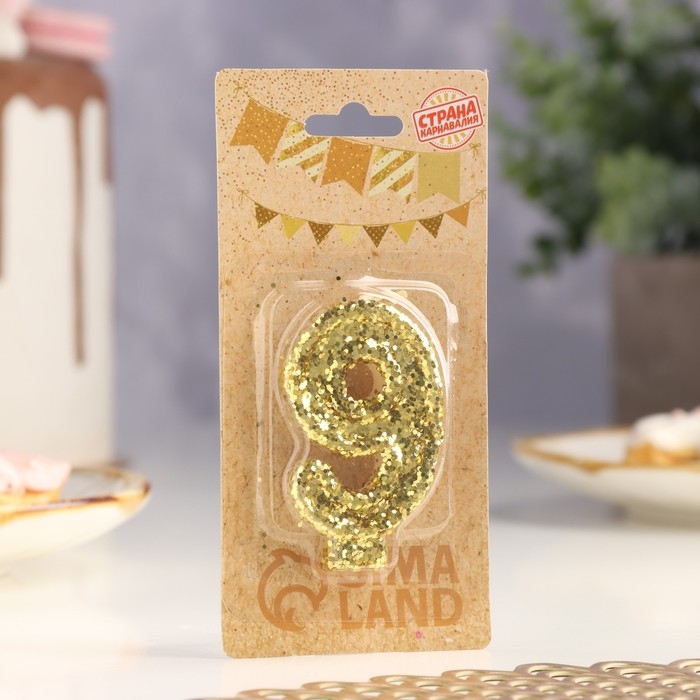 Свеча в торт «Блестки», цифра "9", золото,6.5х4
