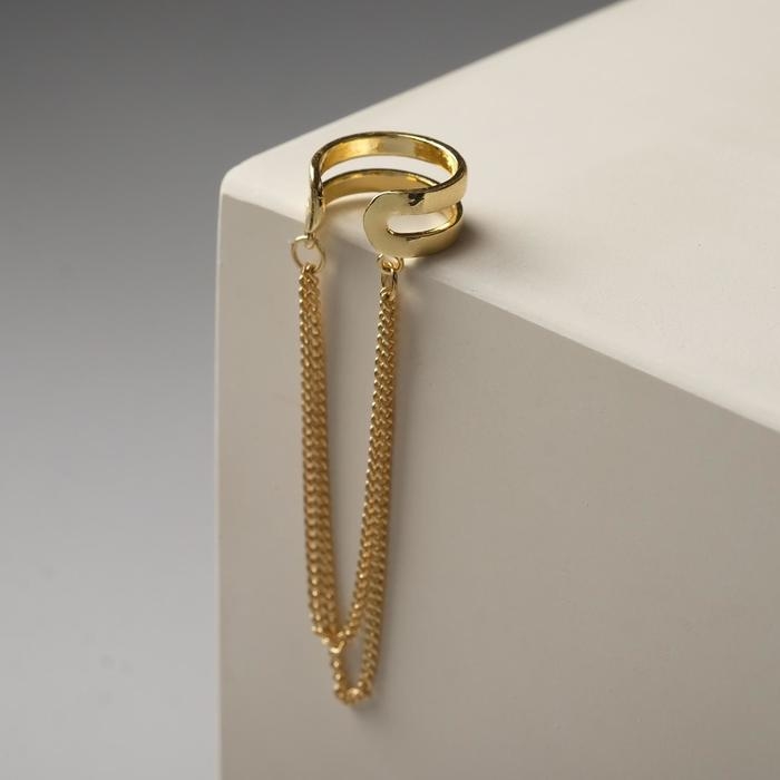 Серьга «Кафф» две полоски с цепочками, цвет золото