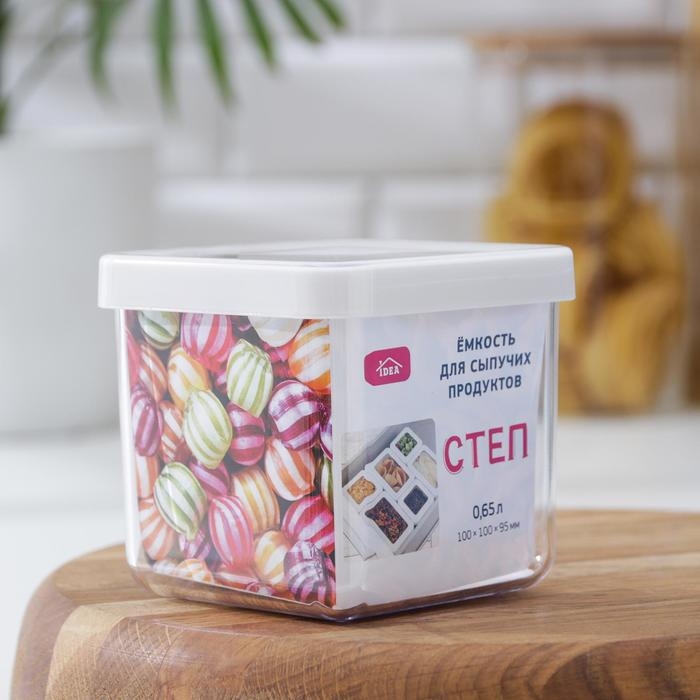 Контейнер для сыпучих продуктов «Степ», 650 мл, 10×10×9,5, цвет белый