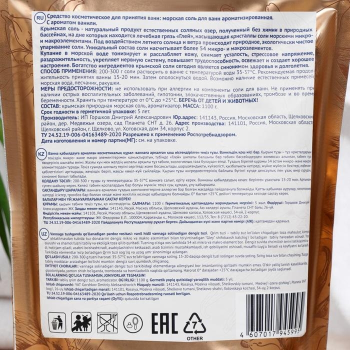 Соль для ванн морская «Крымская», ваниль, 1100 г