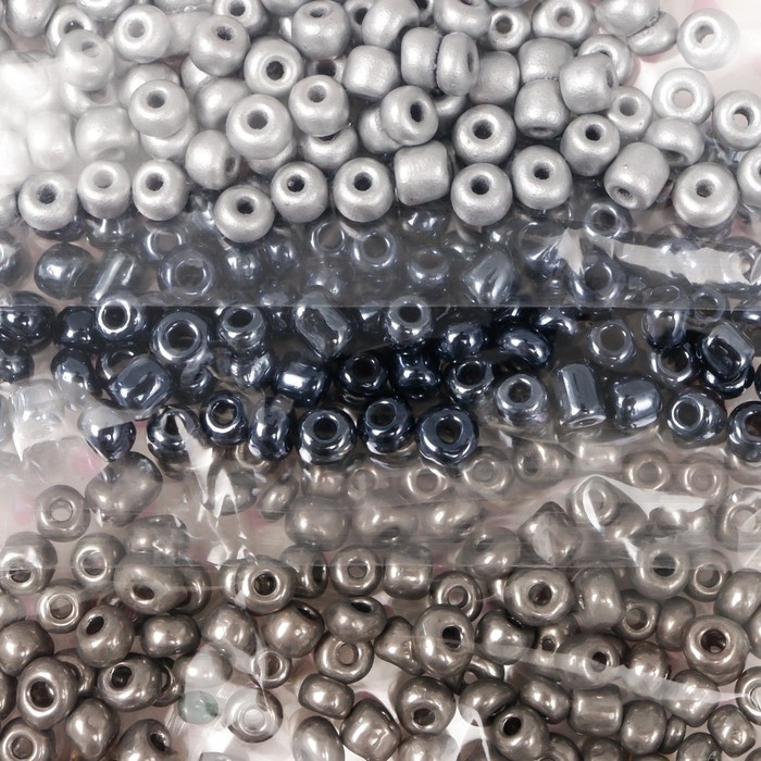 Бисер круглый размер 6/0 "Серебро, золото, бронза и чёрный" 6 цветов х 10 грамм