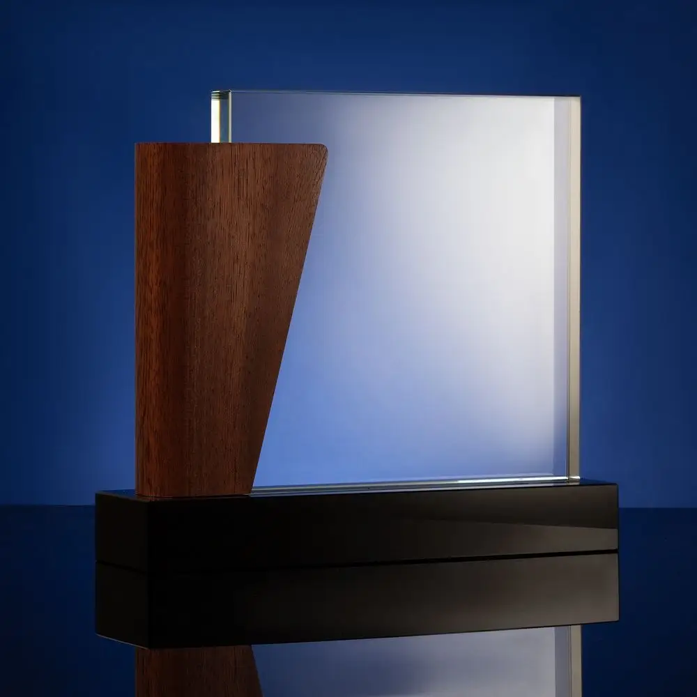 Основательная часть из дерева придает солидности, а сочетание разных материалов — стекла и дерева — позволяет создать эффектное неординарное нанесение. Элегантный, сдержанный стиль делает Voitto идеальной наградой на торжественных мероприятиях, чтобы самые важные моменты в карьере запомнились надолго.
