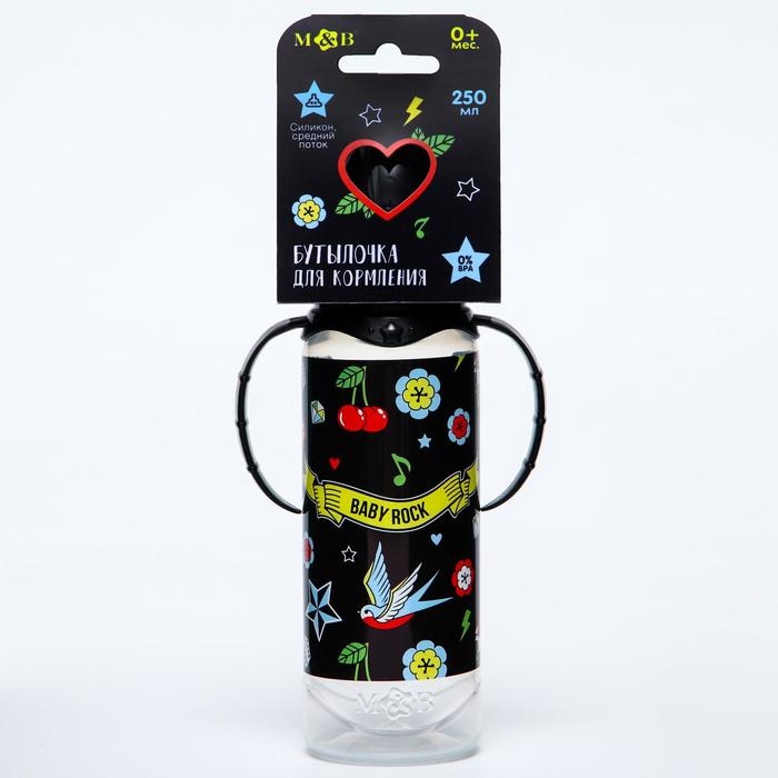 Бутылочка для кормления Baby Rock, классическое горло, от 0 мес, 250 мл., цилиндр, с ручками