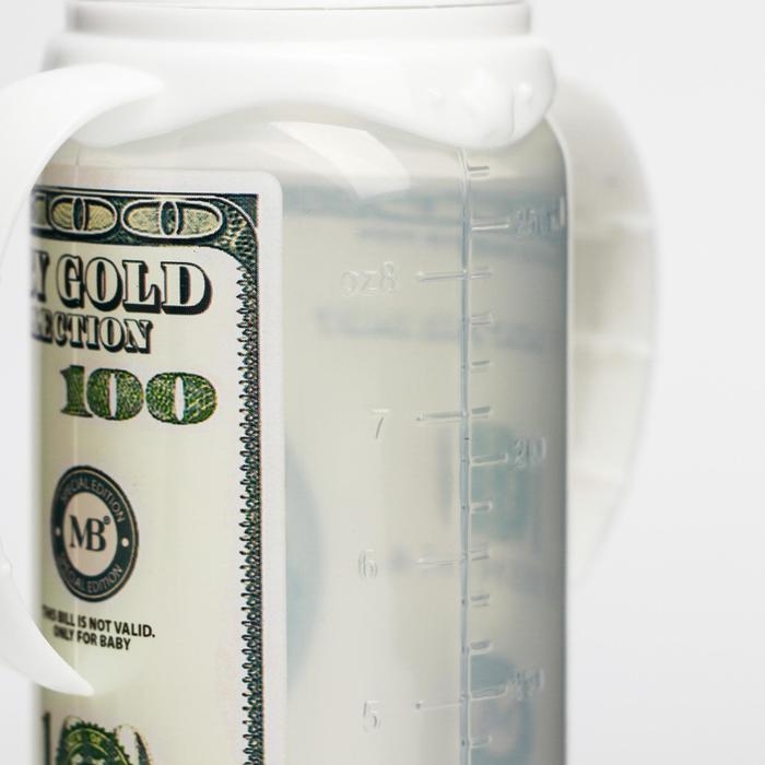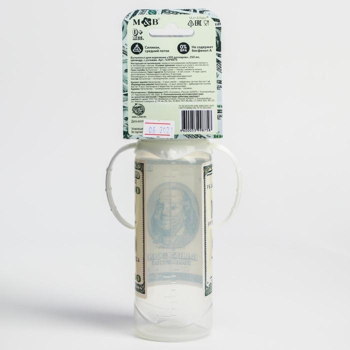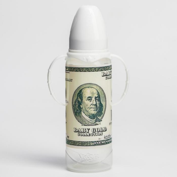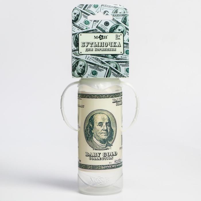 Бутылочка для кормления «100 долларов», 250 мл., классическое горло, от 0 мес, цилиндр, с ручками
