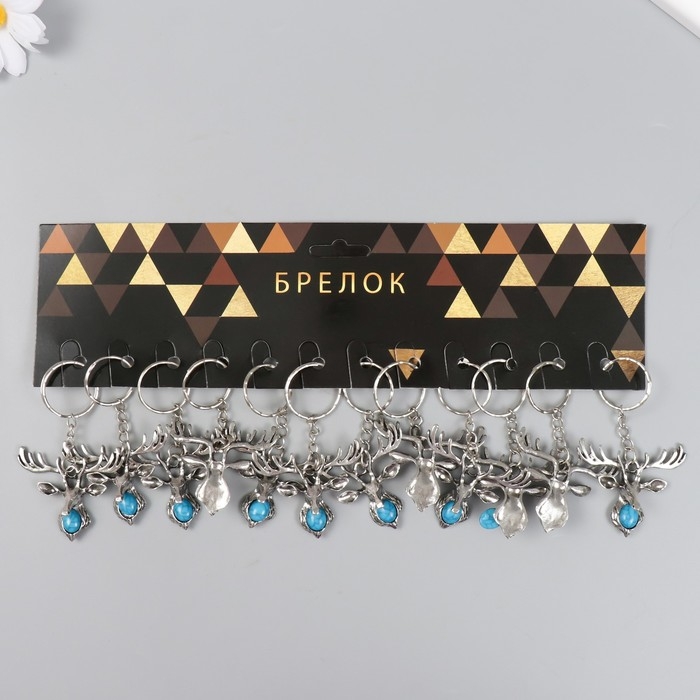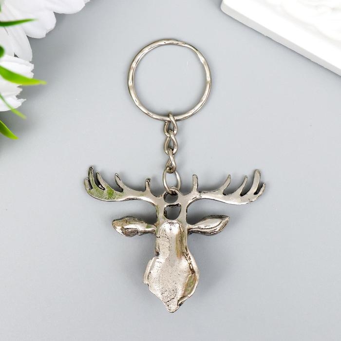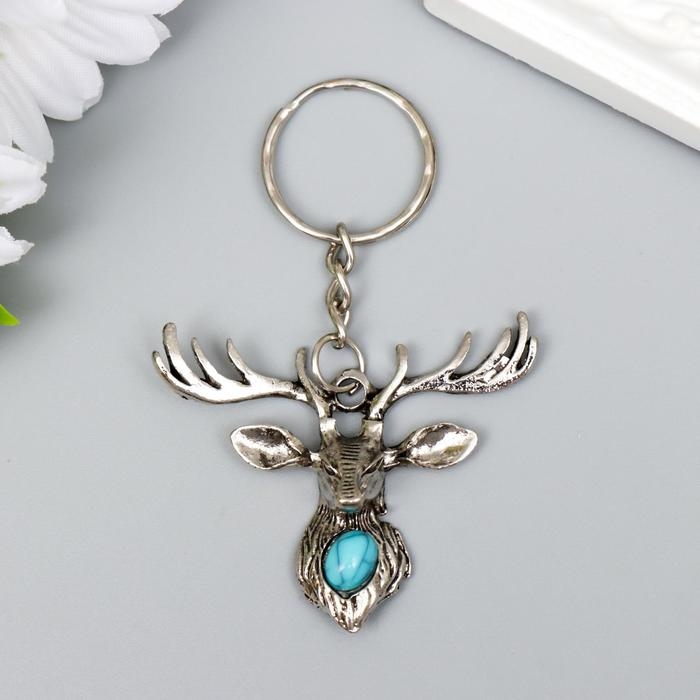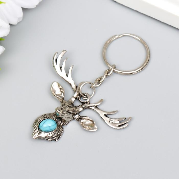 Брелок металл "Олень с бирюзовым камешком" серебро 4х4,8 см