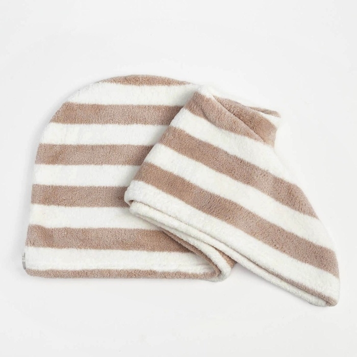 Чалма для сушки волос Этель «Полоски», цв.фиолетовый, 65*25 см, 100% п/э