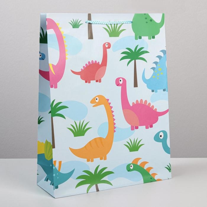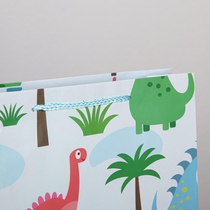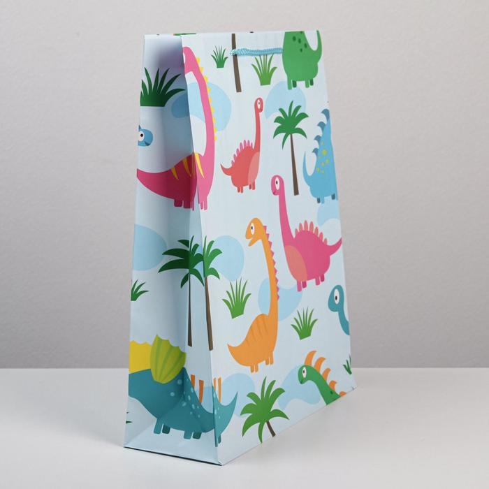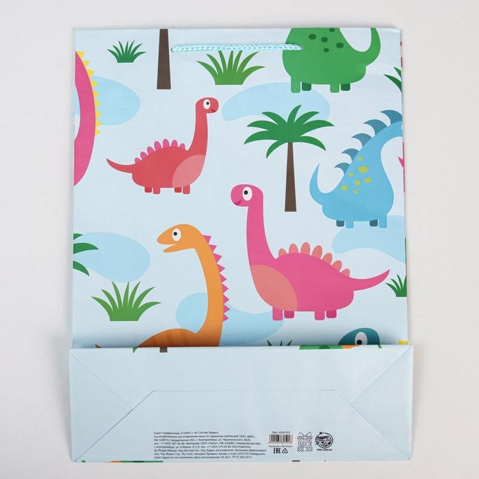 Пакет подарочный ламинированный, упаковка, «Динозавр: Поздравляю», L 28 х 38 х 9 см