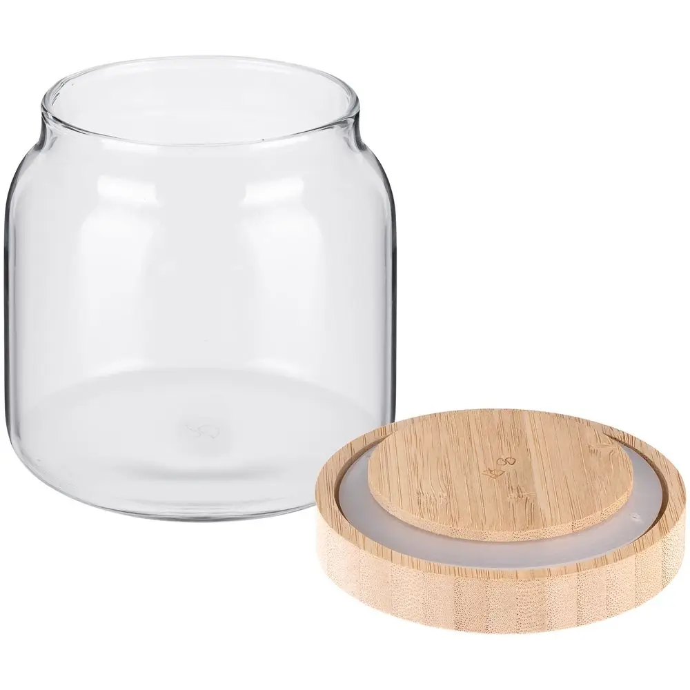 Банка с крышкой из натурального бамбука с привлекательным и экологичным дизайном. Крышка закрывается герметично, надежно защищая содержимое от влаги и воздуха и создавая идеальные условия для хранения.Емкость 575 мл.