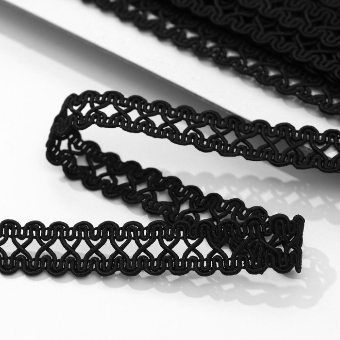 Тесьма декоративная «Песочные часы», 14 мм, 10 ± 1 м, цвет чёрный