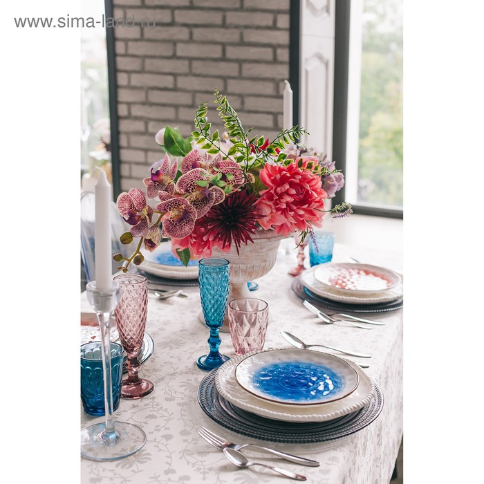 Тарелка Риштанская Керамика "Цветы", синяя, рельефная, 25 см