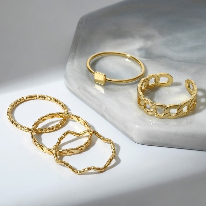 Кольцо набор 5 штук «Идеальные пальчики» геометрия, цвет белый в золоте