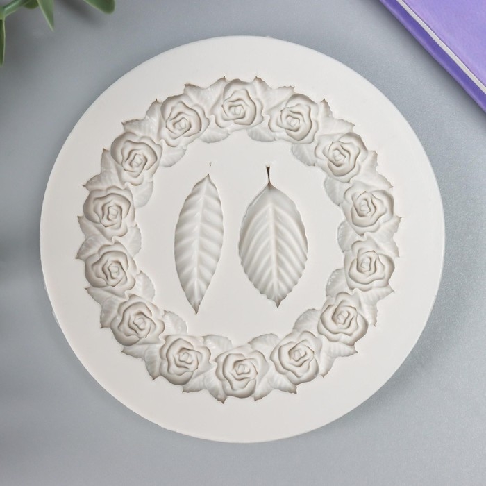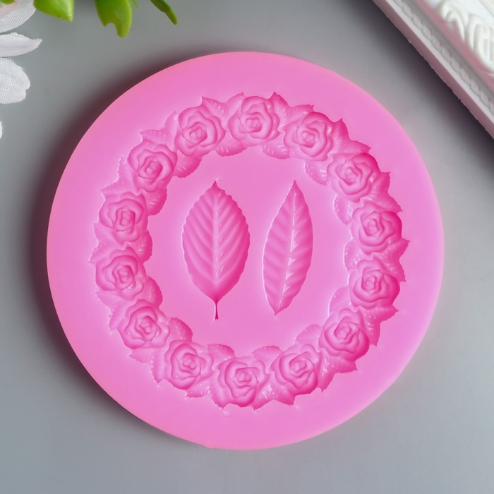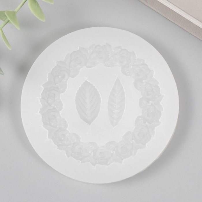 Молд силикон "Круг из роз и листики" 3 предмета 8,5х8,5х0,5 см