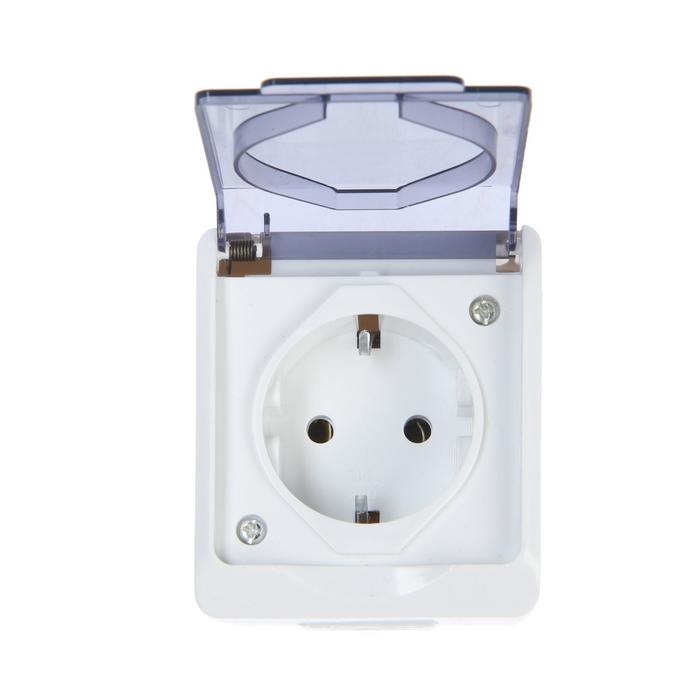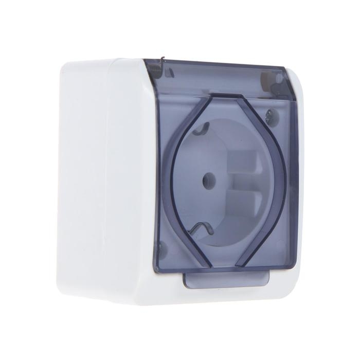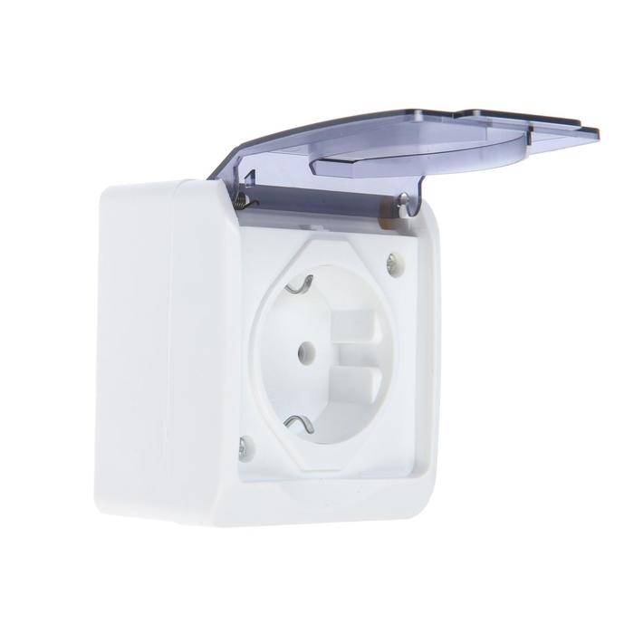Розетка одноместная, 16 А, накладная, с з/к, IP 44, уличная, белая