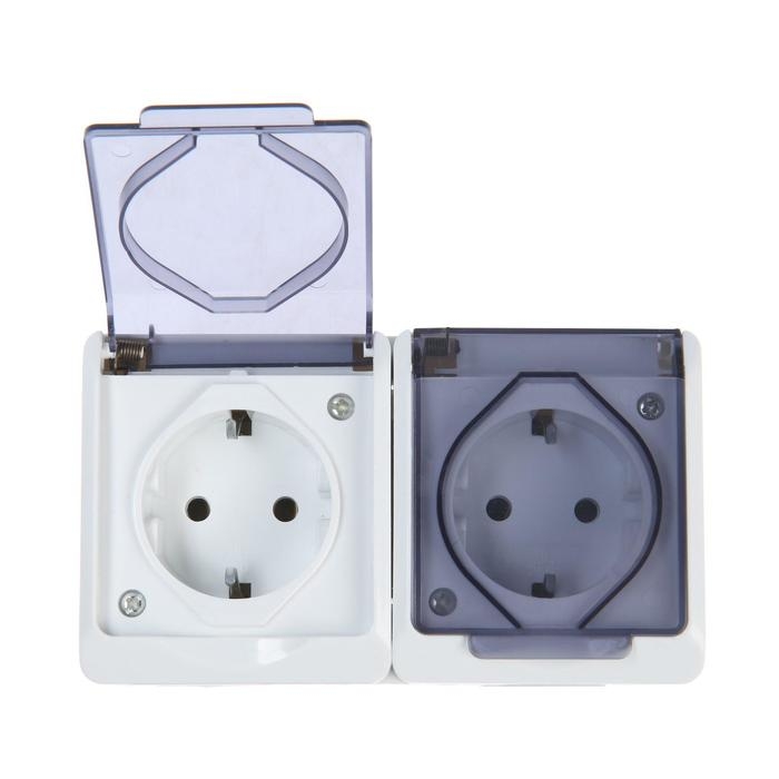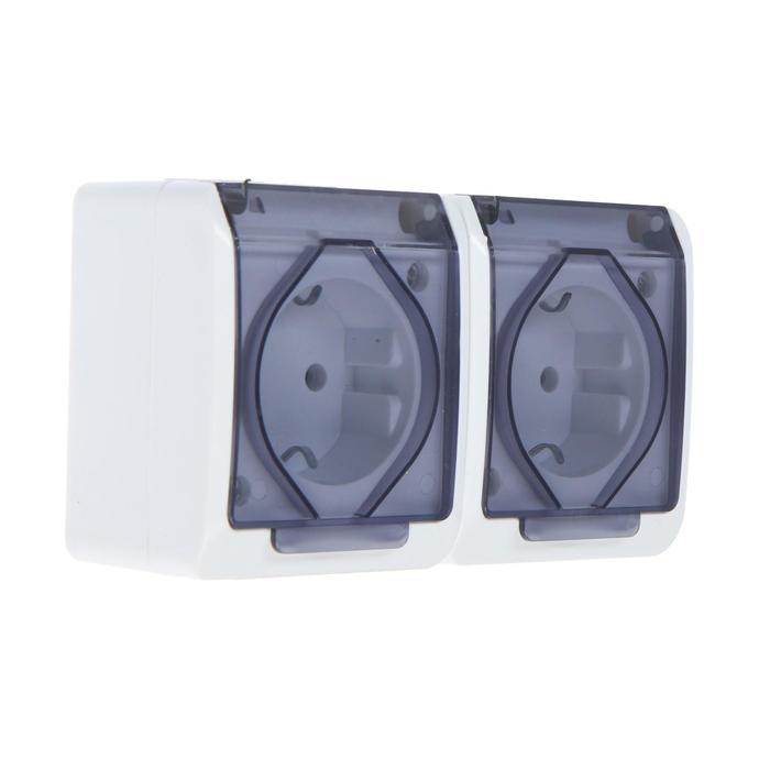 Розетка двухместная, 16 А, накладная, с з/к, IP44, уличная, белая