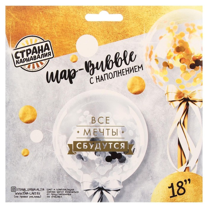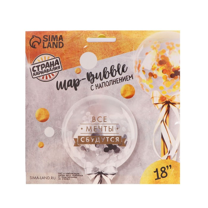 Воздушный шар полимерный 18" «Все мечты сбудутся», прозрачный, с конфетти