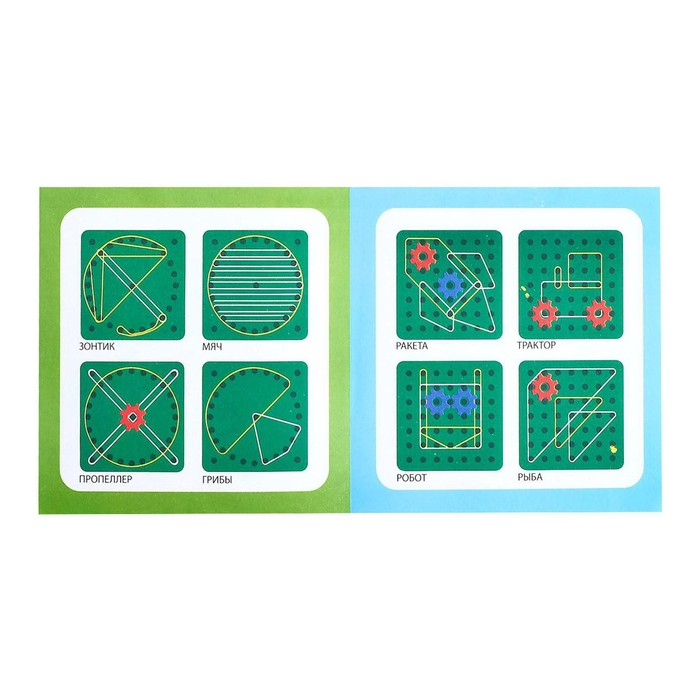 Геоборд «Математический планшет: весёлые картинки» с инструкцией по схемам, цвета МИКС, по методике Монтессори