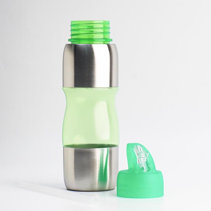 Бутылка для воды велосипедная, 650 мл, "Альби", с поильником, 25 х 6 см, зелёная