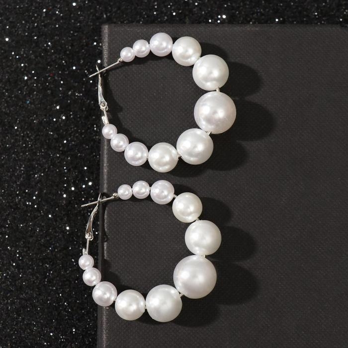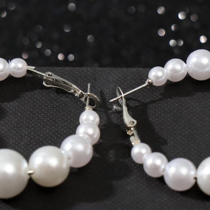 Серьги-кольца «Жемчуг» большие, цвет белый в серебре, d= 5 см