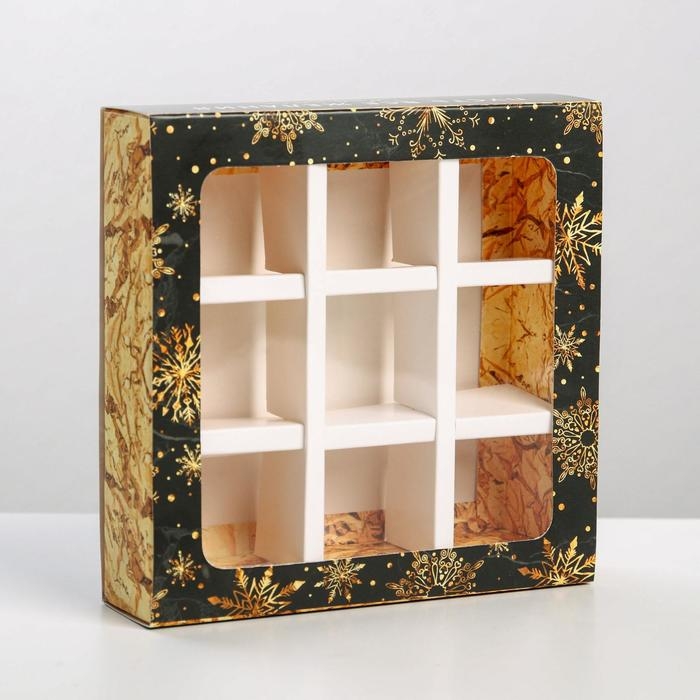 Коробка под 9 конфет с ячейками «Снежинка» 14,5 х 14,5 х 3,5 см, Новый год