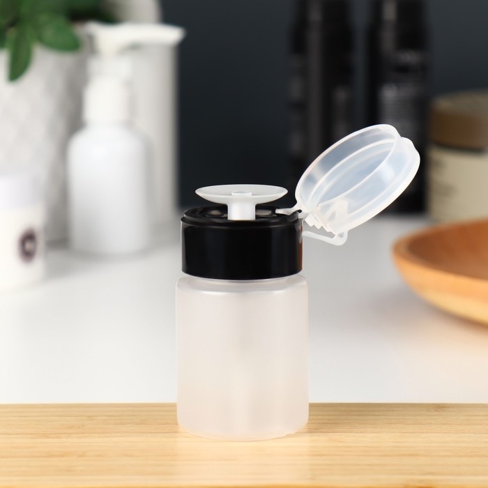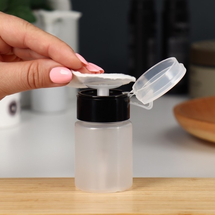 В данной баночке удобно хранить средство для снятия лака, лосьон для лица и другие косметические составы: они не выветрятся и не вытекут. Ёмкостью очень легко пользоваться: просто положите сверху ватный диск и нажмите на помпу, чтобы он пропитался содержимым. Такая система уменьшает расход материала и делает процедуру быстрее и приятнее.
