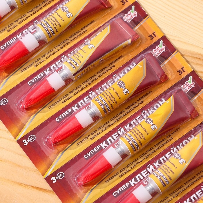 Супер-клей Секундный, мини карта, 1 г, набор 6 штук