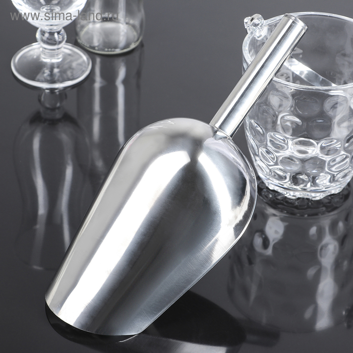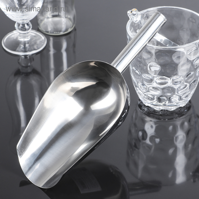 Совок из нержавеющей стали для льда и сыпучих продуктов, 27×12×5,5 см, цвет хромированный
