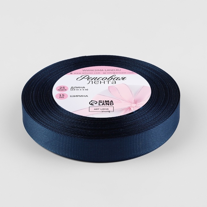 Лента репсовая, 15 мм, 23 ± 1 м, цвет тёмно-синий №38