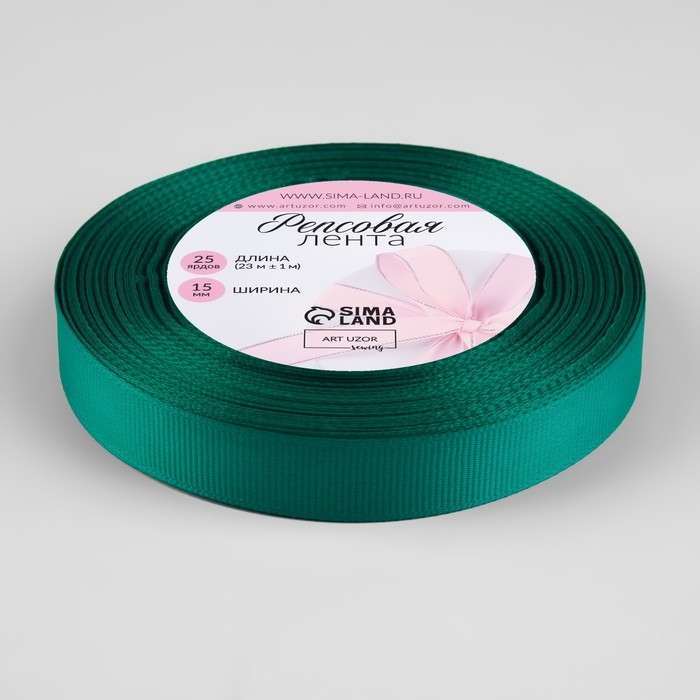 Лента репсовая, 15 мм, 23 ± 1 м, цвет изумрудный №209