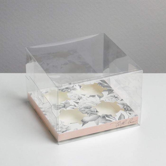 Коробка для капкейка, кондитерская упаковка, 4 ячейки «С любовью», 16 х 16 х 11.5 см