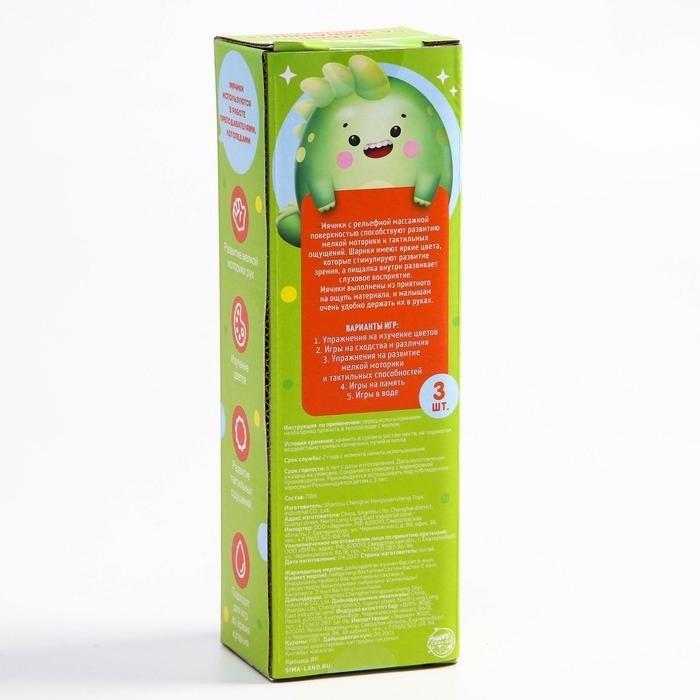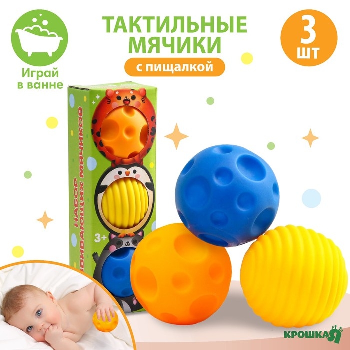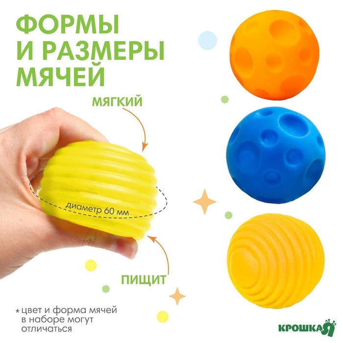 Набор развивающих тактильных мячиков «Малыши-кругляши», с пищалкой, 3 шт, Крошка Я