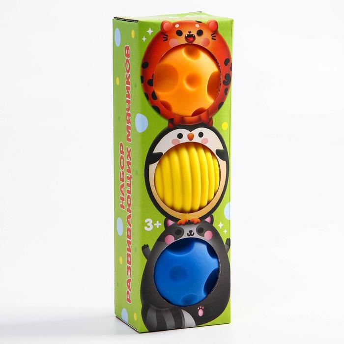 Набор развивающих тактильных мячиков «Лисенок Лёлик», с пищалкой, 3 шт, Крошка Я