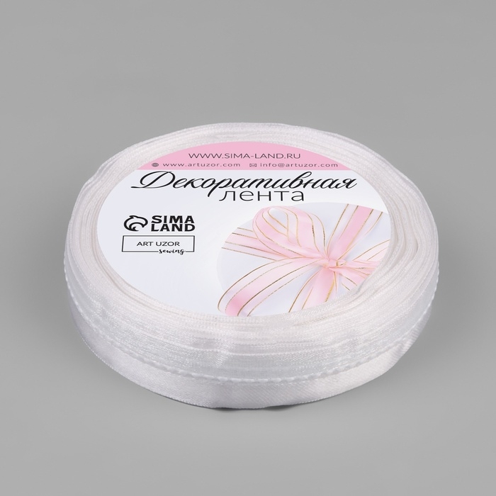 Лента декоративная, капроновая/атласная, 15 мм, 9 ± 0,5 м, цвет белый