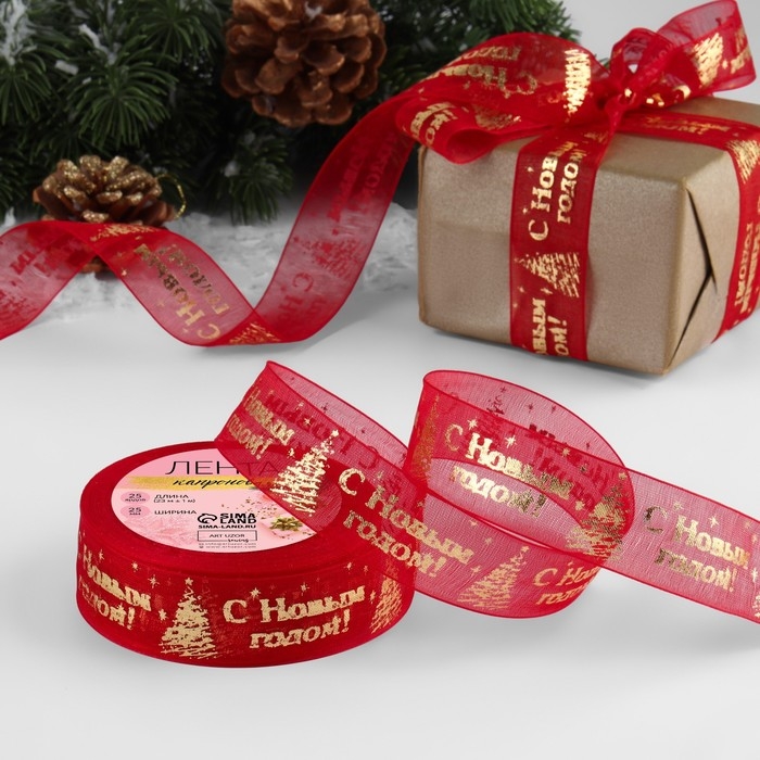 Новый год! Лента капроновая с тиснением «С Новым годом», 25 мм × 23 ± 1 м, цвет красный/золотой №026