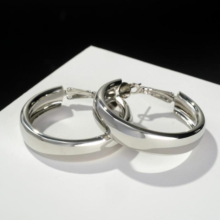 Серьги-кольца «Классика» d=3 см, цвет серебро