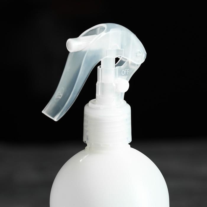 При нажатии на курок жидкость подается наверх через трубку и осуществляется распыление. Насадка с резьбой плотно фиксируется на флаконе со средством.
