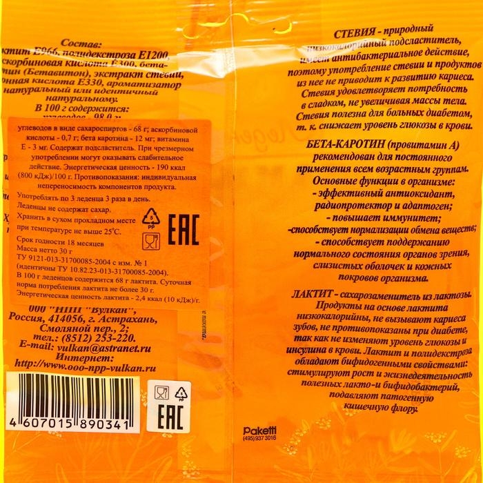 Леденцы витаминные со стевией, без сахара, повышение иммунитета, 30 г