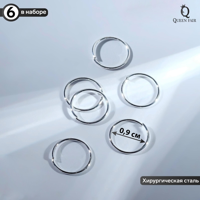 Пирсинг в нос «Колечко» классика, d=9 мм, набор 6 шт., цвет серебро