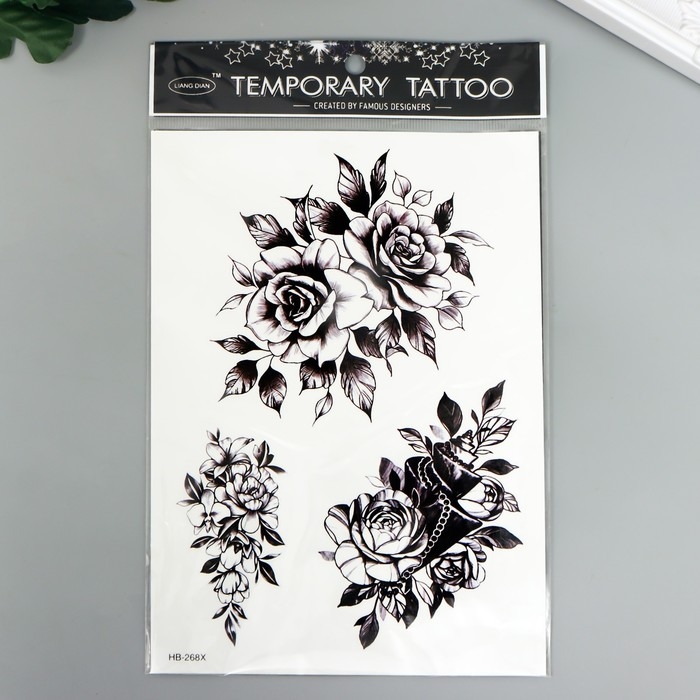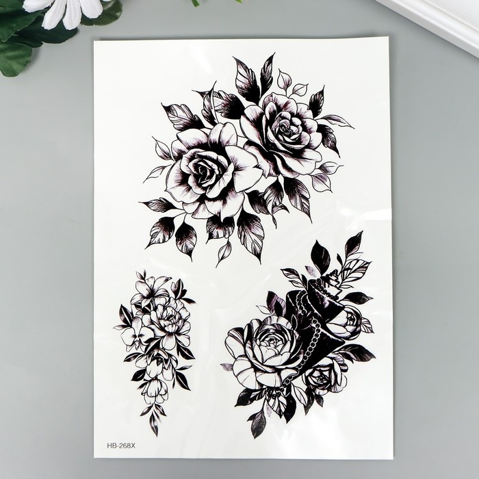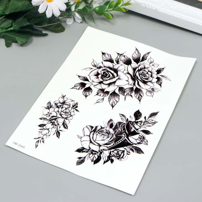 Татуировка на тело чёрная "Розарий" 21х15 см